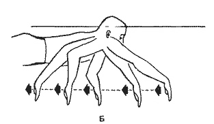Все то, с чем мы говорили выше, является достаточно обоснованным, и мы можем сделать вывод, что пловцу для создания максимума движущих сил во время гребка руками приходится решать два вопроса: 1) по какой траектории выполнять гребок, чтобы кисть руки все время контактировала с невозмущенной массой воды? 2) как ориентировать кисть во время гребка, чтобы она взаимодействовала с водой подобно лопасти гребного винта, но не лопасти гребной гусеницы.