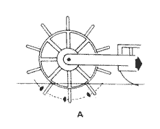 А - гребное колесо, напоминающее гребок пловцу прямой рукой, который изображен на рис. 124. А;
