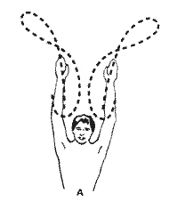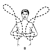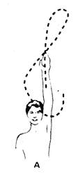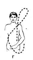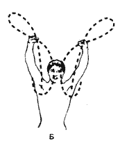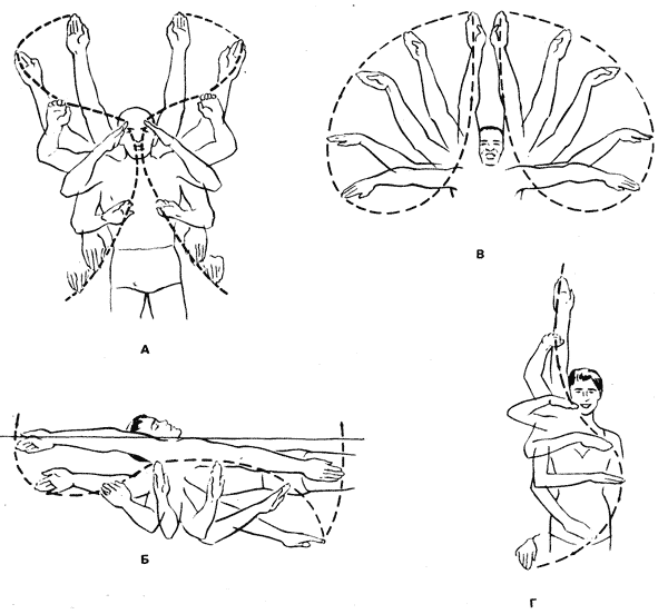 Чтобы получить образное представление о движениях пловца, читатель может вообразить, глядя на рисунок, как кисть движется по траектории, остающейся неподвижной, а сам пловец перемещается или прямо на нас (рис. 144, А), или слева направо (рис. 144, Б), или снизу вверх (рис. 144, В).