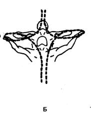 Рис. 140. Правильное (А) и неправильное (Б) положения кисти во время диагонального гребкового движения рукой Марка Спитца (рисунок сделан по кадрам кинофильма Джеймса Каунсилмена "Наука о плавании")