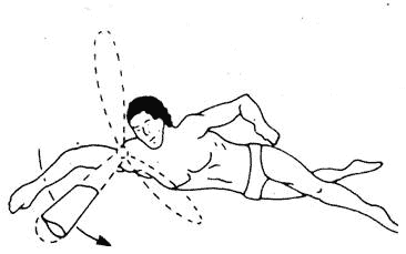Рис. 135. Винтообразный гребок рукой при плавании кролем (по рисунку из книги Джеймса Хея "Биомеханика спорта")