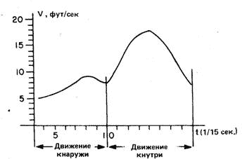 Рис. 138. Графики скорости движения кисти во время гребка рукой Марка Спитца