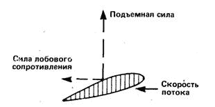 Рис. 146. Возникновение сил на крыле самолета при обтекании его потоком воздуха