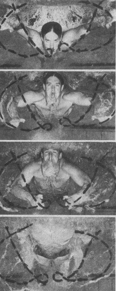 Рис. 127. Подводная кинограмма движений руками при плавании баттерфляем Чарльза Хиккоксв (вид снизу)