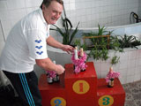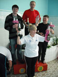 Победители получили командный кубок и праздничное шампанское. Второе место заняла команда бассейна "Дельфин", команда "Садко" - на третьем месте. Они тоже не остались без призов.