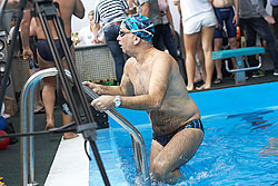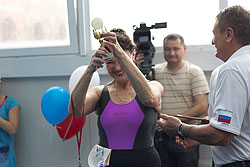Первое место снова заняла команда бассейна "Дельфин", команда бассейна "Прибой" - заняла второе место. На третьем - впервые - гости из Ростова-на Дону. После соревнований - продолжение торжественной части.