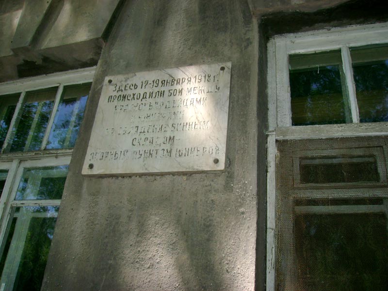 "Здесь 17-19 января 1918 г. происходили бои между красногвардейцами и юнкерами за овладение винным складом - опорным пунктом юнкеров" - no comments