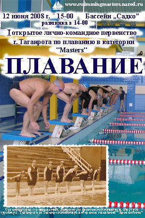 В День России у ветеранов плавания Таганрога был двойной праздник - 12 июня 2008 г. в бассейне "Садко" было проведено I открытое лично-командное первенство г. Таганрога по плаванию в категории "Мастерс". В первый раз в городских соревнованиях участвовали команды из других городов: город Шахты (Ростовская область) был представлен двумя участниками, город Макеевка (Украина) – четырьмя участниками и город Принстон (США) – одним участником.