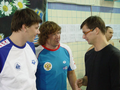 *** 09.11.2006 г. - Из Ярославля с соревнований на Кубок России вернулась наша маленькая, но боевая команда. Не смотря на огромное желание, часть наших пловцов была вынуждена отказаться от поездки: мы еще не доросли до пенсионного возраста и вопросы работы перевесили удовольствие активного отдыха. Стартовавшая в Ярославле команда состояла из одной красной девицы и трех добрых молодцев, но такой сказочный расклад не позволял нам выступить ни в одной эстафете. В этой трагической обстановке приходилось напрягать силы в личных номерах, и не без успеха: Александр Мамченко (на 50 и 100 м брасс) и Дмитрий Дубровский (400 комплекс) стали победителями в своих возрастных группах. Наталья Чурсина и Павел Коновалов заняли призовые места. Александр Мамченко также занял третье место на дистанции 50 м брасс в абсолютном зачете, впервые проводившемся на этих соревнованиях.
