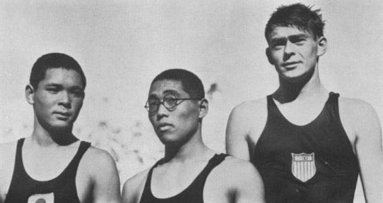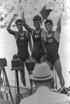 Призеры на дистанции 1500 м вольным стилем: К.Китамура, Ш.Макино (оба - Япония) и Дж.Кристи (США)