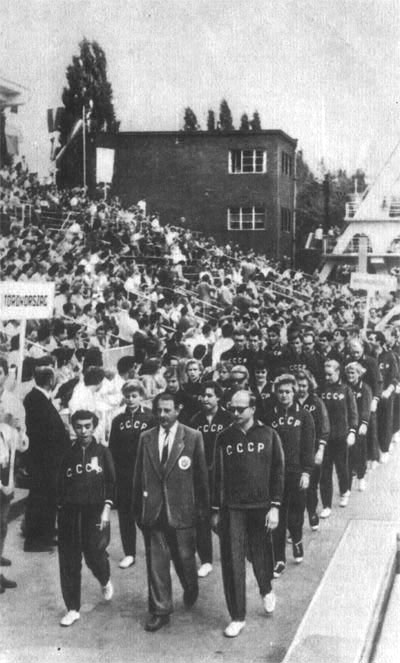 Советская команда на параде открытия IX первенства Европы