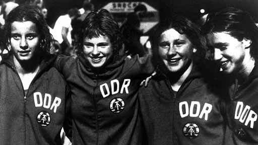 Команда ГДР в комбинированной эстафете: К.Эндер, У.Рихтер, Р.Котер, Р.Фогель