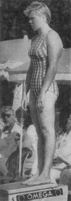 Заслуженный мастер спорта СССР, 13-летняя ленинградская школьница, двукратная чемпионка Европы и Советского Союза по плаванию Юлия Богданова