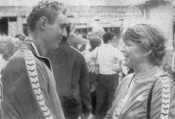 Рекордсмен Европы, серебряный призер -III чемпионата мира в комплексном плавании на 400 м Сергей Фесенко со своим тренером B. Г. Смеловой