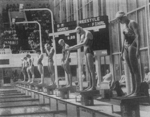Спортсменки ГДР не только побеждали, но в большинстве случаев и устанавливали мировые рекорды. Короткие дистанции. Все три спринтерские дистанции спортсменки ГДР закончили с новыми мировыми рекордами. Особенно отличилась в команде ГДР чемпионка мира 1978 г. Барбара Краузе. Несмотря на свой возраст (ей 7 июля 1980 г. исполнился 21 год), она может быть по праву названа быстрейшей кролисткой мира. На Московской олимпиаде Барбара обновила 3 мировых рекорда: дважды - на дистанции 100 м и в эстафете 4 х 100 м вольным стилем, завоевав три золотые медали. Открытием Олимпиады-80 явилась и другая кролистка ГДР - 16-летняя Карен Метчук, Она добилась в Москве тройного успеха: в финальном заплыве на 100 м вместе с Барбарой перекрыла старый мировой рекорд; помогла команде ГДР выиграть обе олимпийские эстафеты и стала еще чемпионкой Олимпиады на дистанции 100 м баттерфляем. Наши сильнейшие кролистки оказались слабее спортсменок ГДР. О. Клевакина заняла на дистанции 100 и 200 м четвертые места, Н. Струнникова установила два юношеских рекорда СССР и принесла команде одно очко. Ниже своих возможностей выступила на спринтерской дистанции Л. Царева. Наши спортсменки имели полную возможность завоевать серебряные медали в эстафете 4 х 100 м в/ст. Но срыв старта на втором этапе предварительного заплыва, допущенный Н. Струнниковой, лишил команду этих наград, так как она была дисквалифицирована.