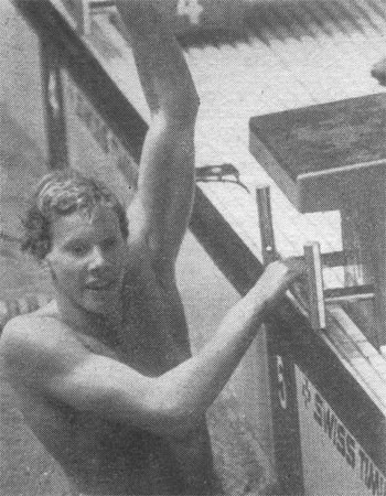 Победитель Московской олимпиады в плавании на 100 м на спине англичанин Бенгт Барон