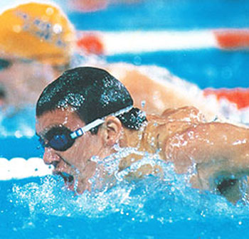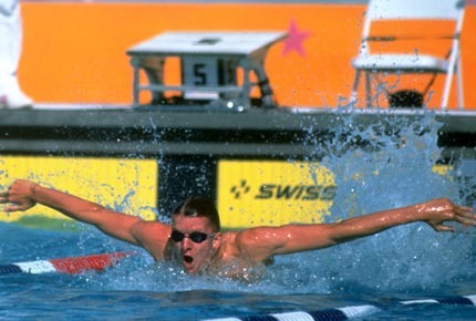 200 м баттерфляй: мировой рекорд 1.57,05 (М. Гросс (ФРГ), 26.08.1983); олимпийский рекорд 1.59,23 (М. Бруннер (США), 1976). Квалификационные заплывы и финалы 3 августа. 35 участников, 5 заплывов. Отсутствует олимпийский чемпион Москвы-80 Сергей Фесенко (СССР). Это третий вид программы, в котором Гросс претендует на «золото» и, кажется, наиболее "легкий" для него. Но в квалификации результаты достаточно плотные: Моралес -1.59,19 (олимпийский рекорд), Гросс - 1.58,72 (отобрал олимпийский рекорд у американца), венесуэлец Видал - 1.59,15. Семь человек проплыли быстрее двух минут! В финале сначала все идет по немецкому плану: быстро взяв старт и возглавив гонку (26,28) Гросс на первом повороте опережает Моралеса (26,69), новозеландца Энтони Мосса (26,79) и Видала (26,81). На середине Гросс лидирует с (56,17),теперь Видал второй (56,54), а Моралес третий (56,73). На последнем повороте Гросс лишь восемь сотых уступает графику собственного мирового рекорда - 1.26,01, далее Видал (1,26,87), Моралес (1.26,99) и невесть откуда взявшийся австралиец Джон Зибен - 1.27,80 (на середине дистанции был лишь седьмым – 57,79). На последнем «полтиннике» австралиец взвинчивает и без того высокий темп, обходит Моралеса и Видаля и настигает Гросса, который с его подчеркнуто медленными и величественными гребками, кажется, завис на последних пяти метрах. Джон Зибен, приехавший в Лос-Анджелесе с результатом 2.01,1, уже улучшил его до 1.59,63 (пятый результат в квалификации). При росте 175 см и весе 66 кг, он кажется пигмеем, по сравнению с двухметровым Гроссом. Но победу вырывает именно он! 1.57,04 – мировой рекорд! У Гросса - 1.57,40, на третьем месте Рафаэль Видаль (1.57,51), едва не настигший немца. Моралес четвертый - 1.57,75. Следует отметить выдержку Гросса, который, увидев результаты на электронном табло, несмотря на огромное разочарование, первым поздравил победителя.