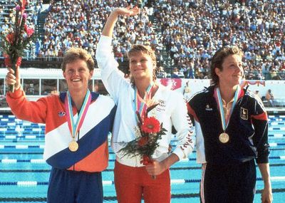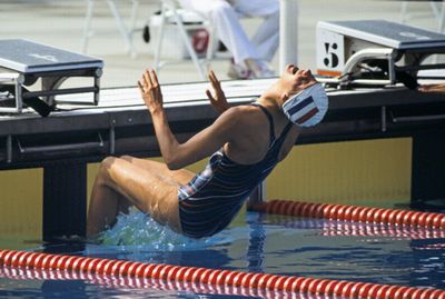 400 м комплексное плавание: мировой рекорд 4.36,10 (П. Шнайдер (ГДР), 01.08.1982), олимпийский рекорд 4.36.29 (П. Шнайдер (ГДР), 1980). Квалификационные заплывы и финалы 29 июля. 18 участниц, 3 заплыва. В финал Колкинс выходит с лучшим результатом - 4.44,42 - почти на семь секунд опережая ближайшую соперницу. Но этот результат очень далек от мирового и олимпийского рекордов… Но в финале Колкинс вступает в борьбу за рекорд: 1.03,63 - 2.13,91 - 3.34,81 (при рекордном графике Шнайдер 1.02,43 - 2.12,16 – 3.33,17). Лишь финиш ставит крест на ее претензиях – последняя сотня 1.04,43 (у немки было 1.02,93). Итог – 4.39,24. И только через девять секунд начинают подтягиваться соперницы: Сюзан Ланделс из Австралии - 4.48,30, Петра Циндлер из ФРГ – 4.48,57 и американка Сюзан Неон – 4.49,41. 4 x 100 м комбинированная: мировой рекорд 4.05.79 (ГДР, 26.08.1983); олимпийский рекорд 4.06,67 (ГДР, 1980). Квалификационные заплывы и финал 3 августа. 13 команд, 2 заплыва. В квалификационных заплывах дисквалифицированы три команды, одна из которых – Нидерланды - с двумя олимпийскими чемпионками (де Ровер и ван Ставерен) и одной медалисткой (Верстаппен) могла вмешаться в спор за «золото». Казалось бы, команде США победа обеспечена. Но на первом этапе чемпионку Эндрюс неожиданно опережает немка Свенья Шлихт (1.04,00 и 1.03,20), и почти не отстают Беверли Роз (1.04,14) из Великобритании и канадка Рима Абдо (1.04,19). Колкинс (1.11,03) на брассе только немного уменьшает разрыв: ФРГ - 2.14,69, США – 2.15,03. Но на дельфине немка Байерман (1.01.29) ничего не может противопоставить Мигер (58,04). И олимпийская чемпионка Хогсхед лишь увеличивает отрыв - 4.08.34. Команда ФРГ заметно отстала - 4.11,97, третьи канадки - 4.12,98.