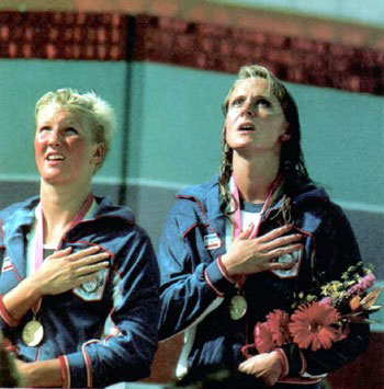400 м вольный стиль: мировой рекорд 4.06,28 (Т. Уикхем (Австралия), 24.08.1978); олимпийский рекорд 4.08,76 (И. Дирс (ГДР), 1980). Квалификационные заплывы и финалы 31 июля. 25 участниц, 4 заплыва. Американка Тиффани Коэн наиболее успешно конкурирует с восточными немками. У нее лучший результат сезона в мире на 400 м вольным стилем и второй на 800. Она претендует на победу на обеих дистанциях. Тем более, что рекордсменка мира Трейси Уикхем давно оставила плавание. В финале Коэн рассчитывает не только на победу, но и на мировой рекорд. Она поначалу опережает график рекорда, но Уикхем в свое время плыла с ускорением (2.04,11 – первая половина и 2.02,17 - вторая) и ее финиша Коэн повторить не может. 4.07,10 – новый олимпийский рекорд со значительным преимуществом над соперницами из Великобритании - 4.10,27 у Сары Хардкастл и 4.11,49 у Джун Крофт. Финишировавшая четвертой Ким Лайнехэн с ее результатом 4.09,57, показанным на национальном отборочном чемпионате, могла бы рассчитывать на большее, чем четвертое место. 800 м вольный стиль: мировой рекорд 8.24,62 (Т. Уикхем (Австралия), 05.08.1978); олимпийский рекорд 8.28,90 (М. Форд (Австралия), 1980). Квалификационные заплывы 2 августа, финал 3-го. 20 участниц, 3 заплыва. Как и на четырехсотке, Коэн будет бороться не только за победу, но и за мировой рекорд. Но здесь ей серьезную конкуренцию может составить соотечественница 15-летняя Мишель Ричардсон, одна из надежд плавания США, показавшая на отборочном чемпионате результат 8.28,82. Стратегия Коэн в финале была такой же, как и на 400 м: стараться с ускорением пройти дистанцию (по рекордному графику первая половина - 4.14,00, вторая - 4.10,62). Коэн начала немного быстрее - 1.01,86 - 2.05,27 - 3.08,18 - 4.11,16, опережая Ричардсон (4.14,86) и Хардкастл (4.15,73). Американка почти повторила великолепный финиш Уикхем - 8.24,95 – но тридцать три сотые ей не хватило до мирового рекорда. Мишель Ричардсон, недотянув даже до своего личного рекорда, вторая - 8.30,73, а Хардкастл – третья – 8.32,60.