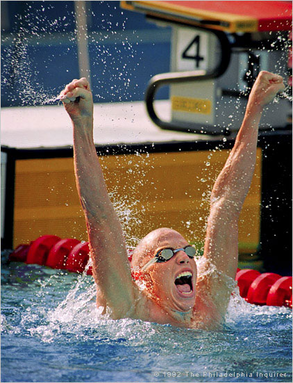 200 м на спине: мировой рекорд 1.56,57 установлен Мартином Лопес-Зуберро (Испания) 23 ноября 1991 года в Тускалосе, олимпийский рекорд 1.58,99 установлен Риком Кэйри (США) в Лос-Анджелесе в 1984 году. Квалификационные заплывы и финал 28 июля. 44 участника разделены на 6 заплывов. Не защищает свой титул чемпион Сеула Игорь Полянский. Наибольшие шансы у испанца Лопес-Зуберро – его мировой рекорд превышает результаты соперников почти на две секунды. Семь человек в квалификации «вышли» из двух минут. В финале, как обычно со старта первым уходит Владимир Сельков - 28,06. На втором повороте по-прежнему Сельков первый - 58,12 (четыре сотые уступая рекордному графику Лопес-Зуберро), на второй и третьей позициях, неожиданно, японец Хадзимэ Итой (58,30), и бельгиец Стефан Маен (58,52). Рекордсмен не торопится и держится на пятом месте (58,86) На последнем повороте ко всеобщему удивлению вперед вырывается японец (1.28,75), второй Сельков (1.29,09), а Лопес-Зуберро уже третий (1.29,15). После третьего поворота Сельков снова захватил лидерство и лишь на последних метрах его настиг испанец, успев коснуться первым - 1.58,47 - на 4 десятые раньше Селькова. Итальянец Стефано Батистелли, вышедший на финишную прямую седьмым (1.30,12), отчаянным рывком преодолел последний отрезок с небывалой скоростью (29,28 - лучший финиш из восьми финалистов) и дотянулся до бронзовой медали - 1.59,40. 100 м брасс: мировой рекорд 1.01,29 установил Норберт Рожа (Венгрия) 20 августа 1991 года в Афинах, олимпийский рекорд 1.01,65 установлен Стивом Лундквистом (США) в Лос-Анджелесе в 1984 году. Квалификационные заплывы и финал 26 июля. 59 участников разделены на 8 заплывов. Небывалая конкуренция: все три призера Сеула (чемпион Мурхауз, Гуттлер и Волков) и обладатель мирового рекорда, не считая остальных соискателей. Высокий стандарт результатов был задан еще в квалификации, пятеро «выплыли» из 1.02,00, лучшее время у Дмитрия Волкова - 1.01,74. Финал «закрыл» мировой рекордсмен Рожа - 1.02,25 (в Сеуле 8-й результат был 1.03,08). В финале, как и в Сеуле, первым в отрыв ушел Волков (28,89), за ним соотечественник Василий Иванов (28,98) и Нельсон Дибел из США (29,09), Рожа плывет четвертым (29,19). Не оставивший надежды на повторение Сеульского успеха Мурхауз – шестой (29,46). На 75 метрах Иванов начинает «сдавать», Рожа, наоборот, добавляет. За десять метров до финиша «проседает» Волков. И касание остается за Нельсоном Дибелом, который выигрывает «золото» с результатом 1.01,50 - новый олимпийский рекорд. Второй – Рожа - 1.01,68, третий - австралиец Филип Роджерс - 1.01,76. Мурхауз – восьмой, но даже повторение Сеульского результата позволило бы ему подняться лишь на шестое место.