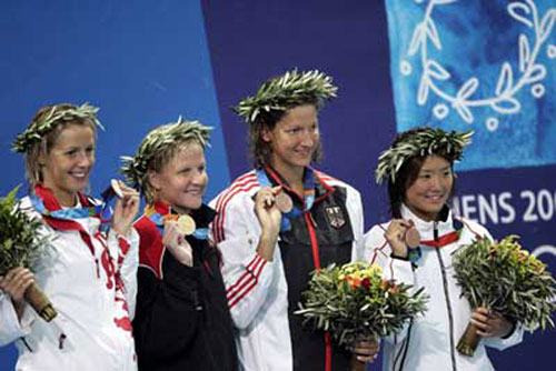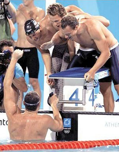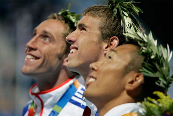 200 м вольный стиль: П.ван ден Хугенбанд (Нидерланды), И.Торп (Австралия), М.Фелпс (США)