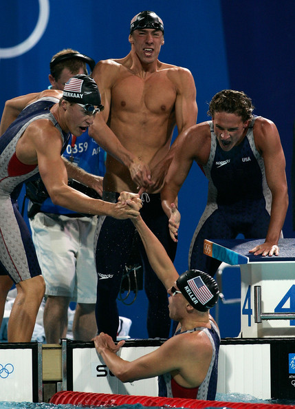Чемпионы в эстафете 4x200 м вольным стилем: Р.Лохте, М.Фелпс, П.Вандеркай, К.Келлер (США)