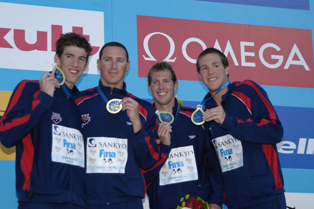 Чемпионы в эстафете 4х100 м вольным стилем: М.Фелпс, Дж. Лезак, Н.Дастинг, Н.Уолкер (США)