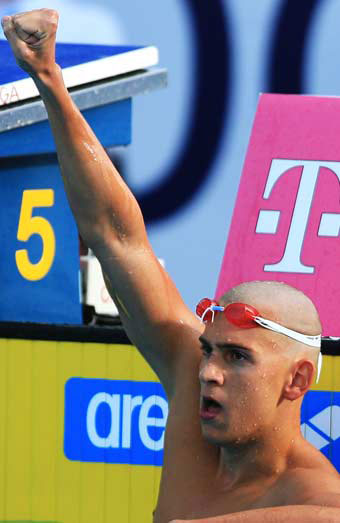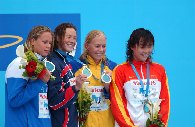 200 м вольный стиль: Ф.Пелегрини (Италия), С.Фиге (Франция), Д.Лилльхаге (Швеция), Ю Янг (Китай)