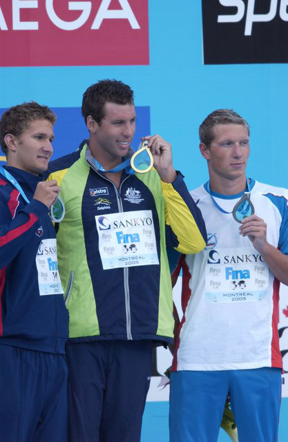 800 м вольным стилем: Л.Дженсен (США), Г.Хаккет (Австралия), Ю.Прилуков (Россия)