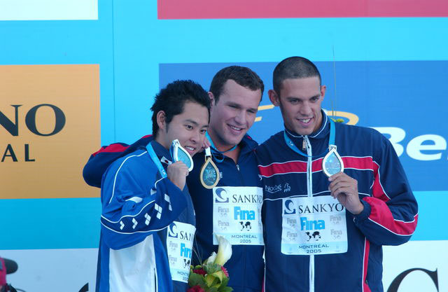 400 м вольный стиль: А.Шибата (Япония), Л.Манаду (Франция), К.Мак-Клэтчи (Великобритания)