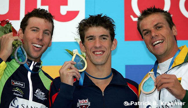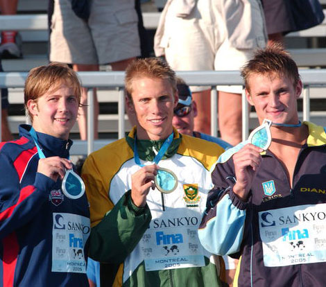 50 м баттерфляем: И.Крокер (США), Р.Шуман (ЮАР), С.Бреус (Украина)