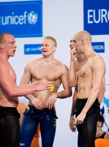 Команда Швеции - чемпионы в эстафете 4х100 м вольным стилем