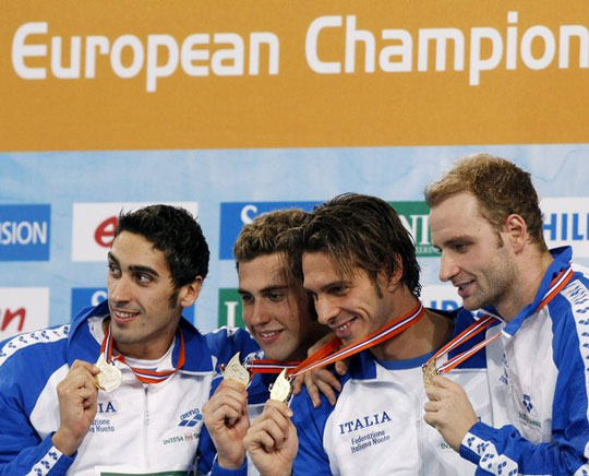 Команда Италии - чемпионы в эстафете 4х200 м вольным стилем
