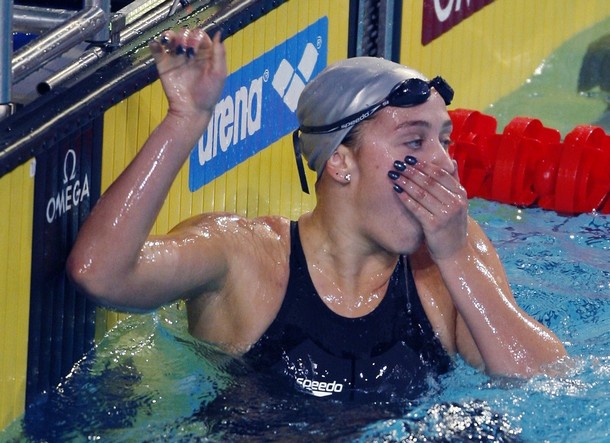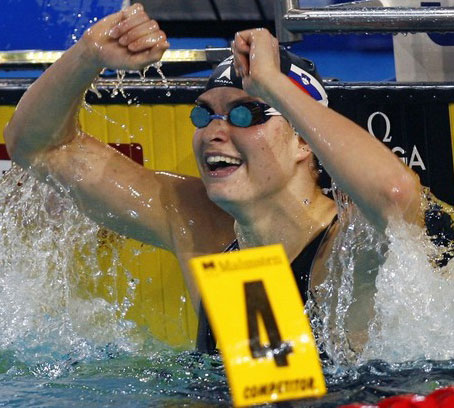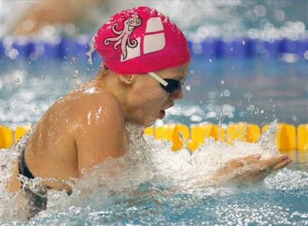 100 м брасс: И.Хоестман (Швеция), М.Юкич (Австрия), А.Алексеева (Россия)