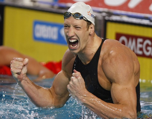 100 м брасс: О.Лисогор (Украина), А.Дале Оен (Норвегия), Х.Дюбоск (Франция)