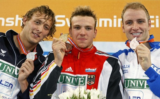 200 м вольный стиль: А.Лево (Франция), П.Бидерман (Германия), М.Россолино (Италия)