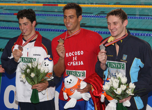 50 м баттерфляй: Р.Муньос Перес (Испания), М.Кавич (Сербия), С.Бреус (Украина)