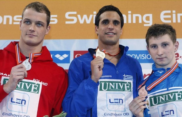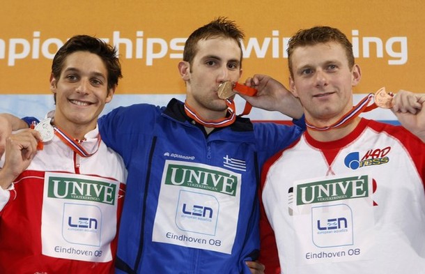 50 м на спине: Ф.Ланг (Швейцария), А.Григориадис (Греция), Л.Кричко (Словакия)