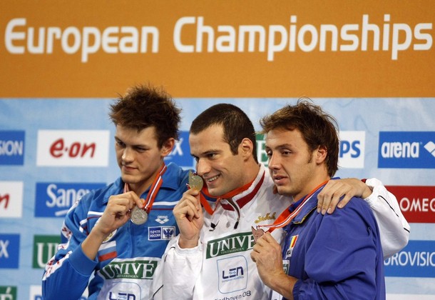 200 м на спине: А.Вятчанин (Россия), М.Роган (Австрия), Р.Флореа (Румыния)