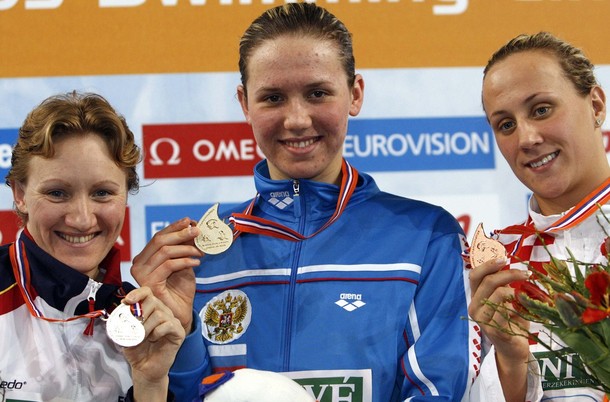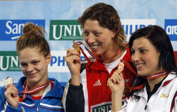 50 м брасс: Ю.Ефимова (Россия), Й.Шефар (Германия), М.Юкич (Австрия)