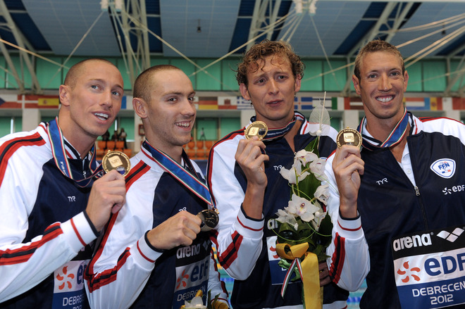 Команда Франции - чемпионы в эстафете 4х100 м вольным стилем