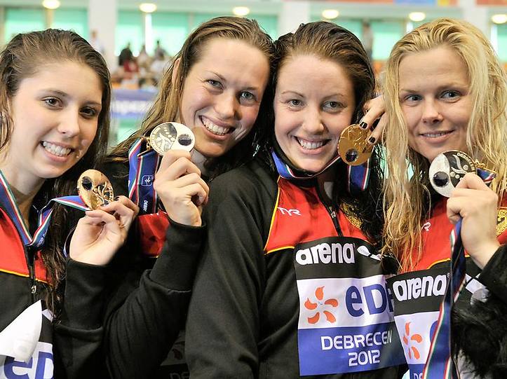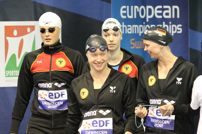 Команда Германии - чемпионки в эстафете 4х100 м вольным стилем