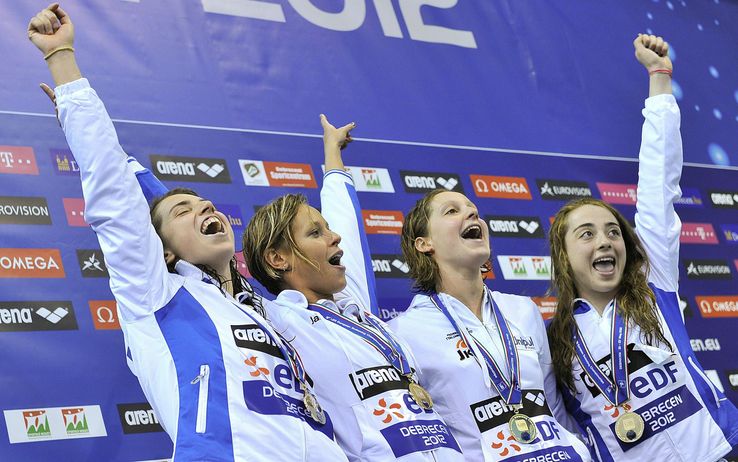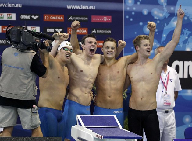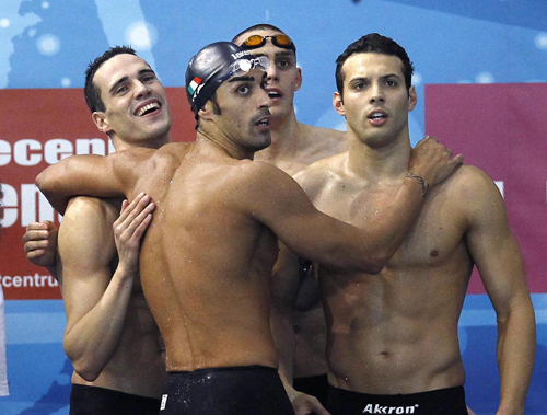 Команда Италии - чемпионки в эстафете 4х200 м вольным стилем