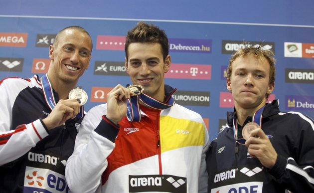 50 м баттерфляй: Ф.Буске (Франция), Р.Муньос Перес (Испания), Е.Цуркин (Беларусь)