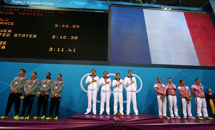 Команда Франции - чемпионы в эстафете 4х100 м вольным стилем