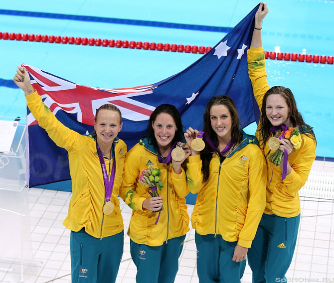 Команда Австралии - чемпионки в эстафете 4х100 м вольным стилем