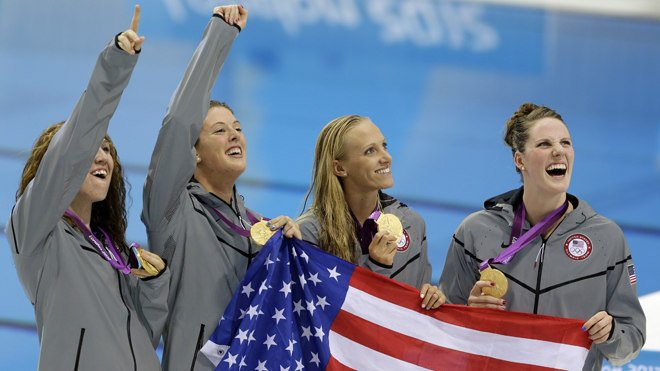Команда США - чемпионки в эстафете 4х200 м вольным стилем