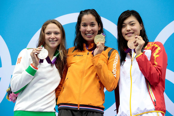 200 м баттерфляй: Н.Хоши (Япония), Цзяо Люян (Китай), М.Бельмонте Гарсиа (Испания)