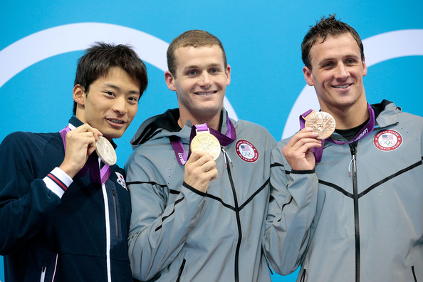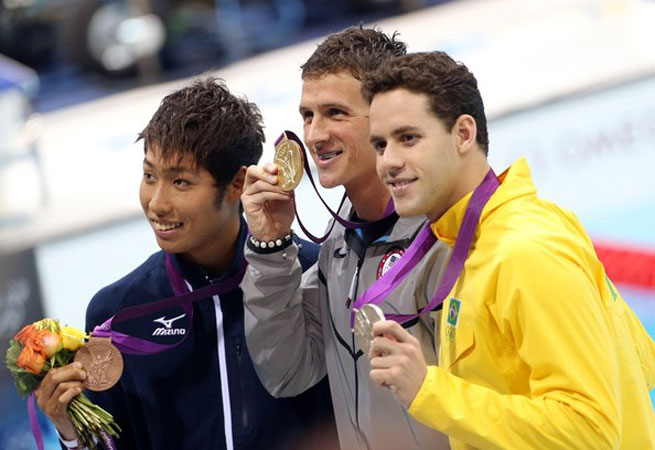 400 м комплекс: К.Хагино (Япония), Р.Лохте (США), Т.Перейра (Бразилия)