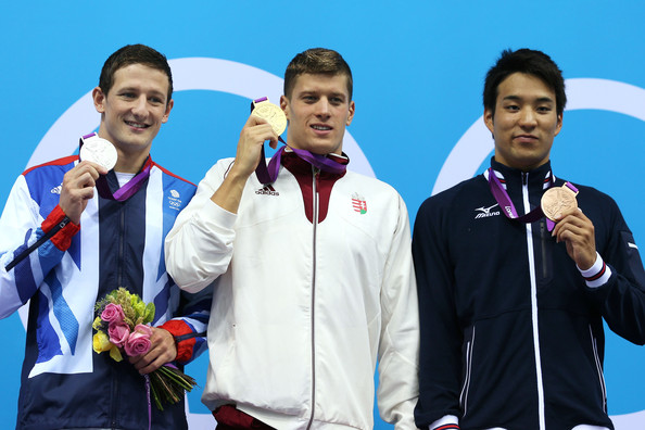 200 м вольный стиль: Сун Янг (Китай), Я.Аньель (Франция), Парк Тае Хван (Южная Корея)